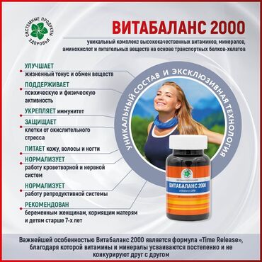 Витабаланс 2000 – это уникальный комплекс высококачественных витаминов, минералов, аминокислот и питательных веществ на основе транспортных белков-хелатов, созданный для всесторонней поддержки жизнедеятельности организма.