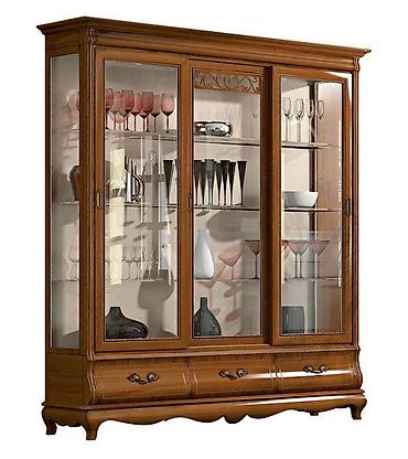 Витрина ( сервант) 3-х дверная купе с 3-я ящиками и с раздвижными стеклянными дверцами, Италия. Стилистика – французский Прованс. Отличительные признаки данной серии - уравновешенные формы, плавные фигурные линии фасадов, ажурная резьба по дереву ручной работы (накладной элемент).