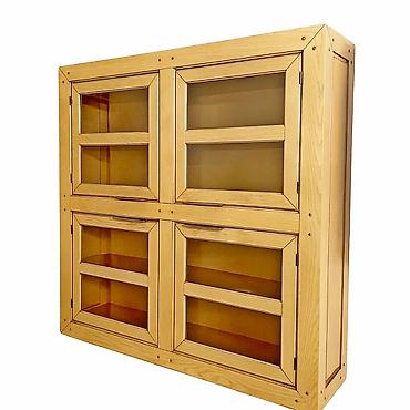 Витрина в этническом стиле, 4 - дверная, навесная, Италия, размер 128 см х 33 см, высота 138 см. Материал - натуральная древесина дуба естественного оттенка. Узор древесины на выкладках, украшающих фасады, подобран таким образом, что создается впечатление экзотической породы древесины. Изящные ручки в виде планок-«язычков», декоративные мебельные гвоздики, украшающие углы, лаконичные формы и практически полное отсутствие декора более всего напоминают сдержанный и строгий японский минимализм. ЕС 011