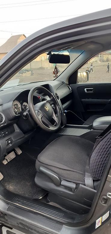 Honda Pilot — просторный 7/8-местный SUV с V6 и автоматом. Полный привод, высокий клиренс и массивные пороги-ступени для удобной посадки. Цвет: темно‑серый.