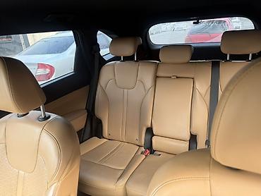 Автомобиль Kia Sorento, представленный на фотографиях, имеет темный цвет кузова и светлый салон. Внутри расположены удобные сиденья и современная приборная панель с мультимедийной системой. На рулевом колесе видны кнопки управления. Автомобиль оснащен литыми дисками. Вместительный багажник позволяет перевозить различные вещи. Подходит для комфортных поездок по городу и за его пределами.
