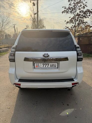 На одном из фото показан задний вид Toyota Land Cruiser Prado белого цвета с KG госномером 777 ARU (для сравнения/к визуализации форм‑фактора).