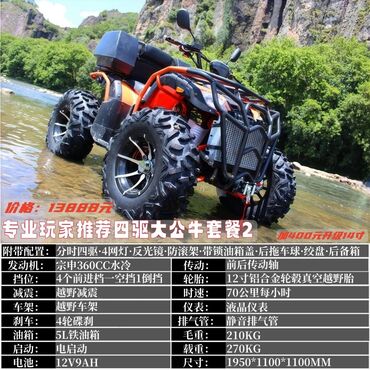 Цвет: оранжевый с черными элементами, грязезащитные крылья и мощные бамперы. Подходит для бездорожья, охоты, хозяйственных работ и прогулок. Цена на изображениях указана в юанях.