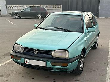 Volkswagen Golf III, 3‑дверный хэтчбек, бирюзовый цвет кузова. Компактный городской автомобиль с передним приводом.