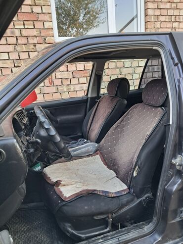 Заднее пассажирское пространство легкового автомобиля. - Тканевая обивка сидений темно-серого цвета, задняя спинка цельная, с подголовниками. - Чехлы на передних сиденьях, на одном из них — махров...