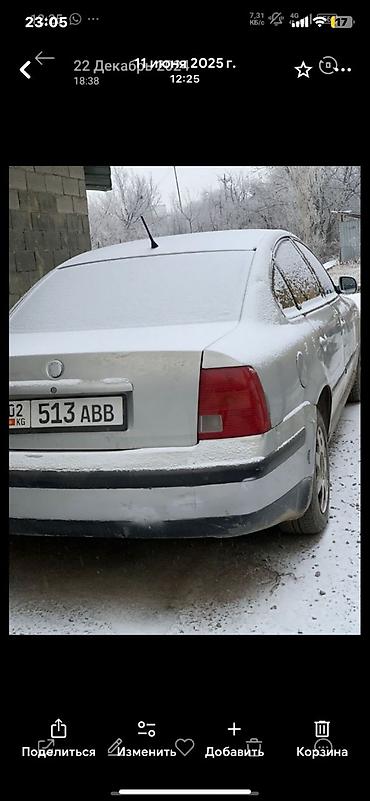 Volkswagen Passat Variant (универсал), ориентировочно B5+ Кузов: - Универсал, 5 дверей - Цвет: голубой/сине‑зеленый металлик - Тонированные задние стекла - Рейлинги на крыше - Литые диски - Брызго...