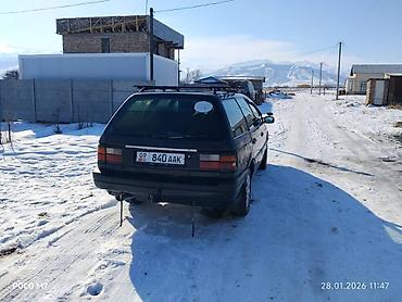 Volkswagen Passat Variant (универсал), черный цвет, киргизская регистрация (KG, номер 840 AAK). Кузов универсал с продольными рейлингами на крыше и фаркопом. Передний привод, 5‑дверный, 5 мест.