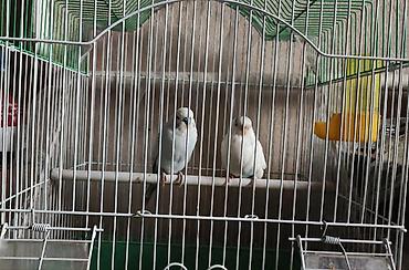 Волнистые попугаи в комплекте с клеткой. Описание: - Яркие волнистые попугаи разных окрасов (желтые, голубые, белые, серые, пестрые). - Клетки нескольких цветов на выбор: синяя, зеленая, белая. - ...