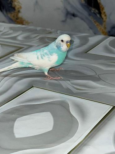 Волнистый попугай белый Особенности: - Окрас: полностью белый, тёмные глаза, клюв жёлтый. - Активный, любит лазать по прутьям и сидеть на жердочках. - Питается зерносмесями (в кормушке овёс/просо ...