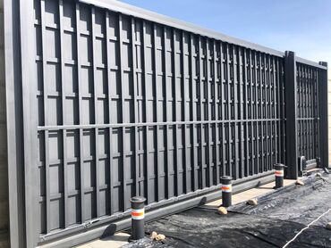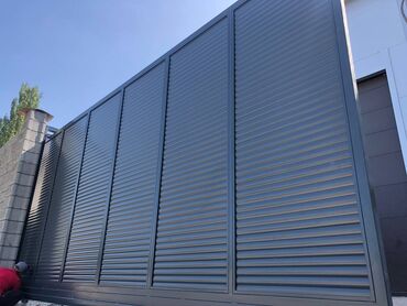 Откатные металлические ворота с автоматикой - Тип: консольные откатные ворота - Материал полотна: сталь с горизонтальной жалюзийной (перфорированной) облицовкой - Каркас: усиленный профиль, направ...