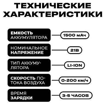 Воздуходувка Электрическая Аккумуляторная, 1000 Вт, Об/Мин, 21 Вт .
