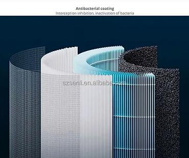 - Круглый сменный фильтр «другого» типа с многослойной конструкцией: предварительный слой для крупных частиц, высокоэффективный складчатый слой для мелкой пыли/аллергенов, угольный слой для запахов и газов, антибактериальное покрытие.