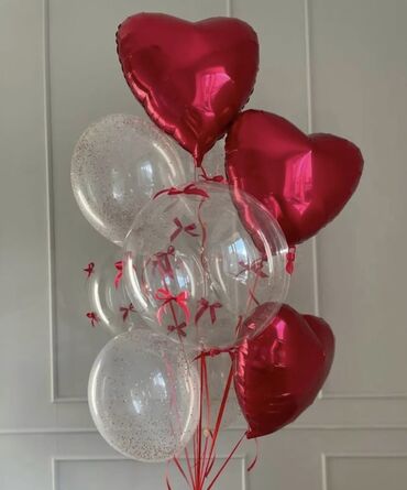 Соберем композицию под вашу идею и цветовую гамму: романтические сердца, стильные хромовые связки, эффектные цифры для возраста/даты, прозрачные шары с декором и многое другое.
