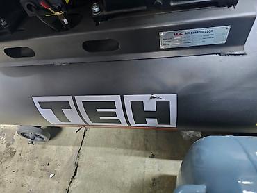 Поршневой воздушный компрессор TEH, разработанный для различных задач, где требуется сжатый воздух. Модель оснащена медным двигателем, что способствует надежности и долговечности. Компрессор установлен на ресивере серого цвета с нанесенным логотипом «TEH», обеспечивающим стабильное давление. Для удобства перемещения агрегат оборудован колесами. Встроенный манометр позволяет контролировать рабочее давление, что делает его удобным для использования в мастерских, гаражах или на небольших производствах.