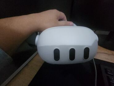 - Шлем виртуальной реальности белого цвета с передними камерами для трекинга и сквозного просмотра.