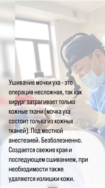Операция по ушиванию мочки выполняется под местной анестезией, занимает от 10 до 30 минут. После этого пациент может сразу вернуться к привычному образу жизни. П/о швы снимается через 6 дней.