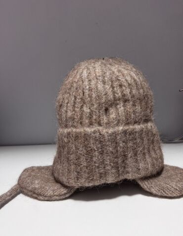 - Модель: вязаная шапка с отворотом, ушами-клапанами и длинными завязками