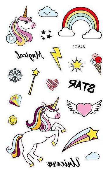Временные переводные татуировки детские на тело , Единороги, цена за 1 шт ( блистер).