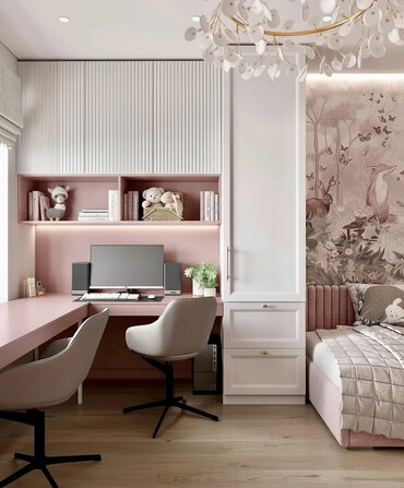 Мебельный комплект для детской/кабинета: встроенные рабочие зоны и системы хранения