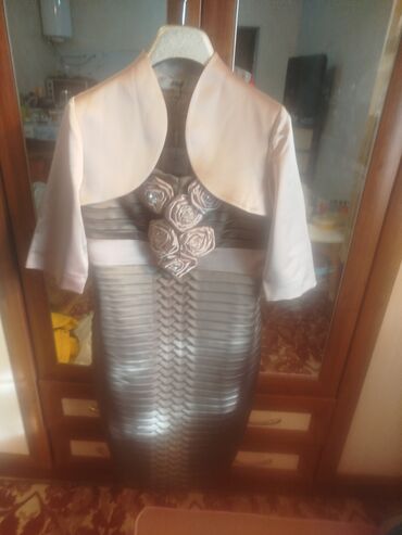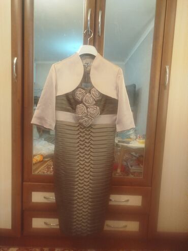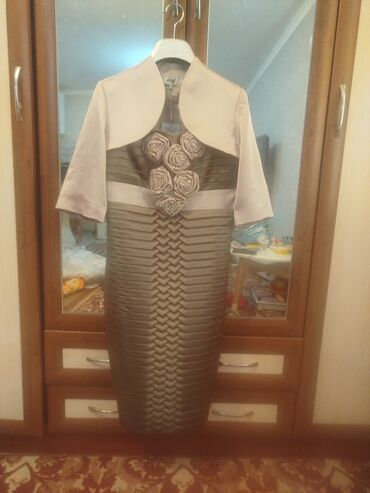 ВвПродается элегантное платье с болеро.Новая.Производства Турция.Смотрится очень нарядно и дорого.Ткань атлас.С красивой драпировкой и цветочными элементами.Подходит для торжеств,свадеб, юбилеев.