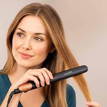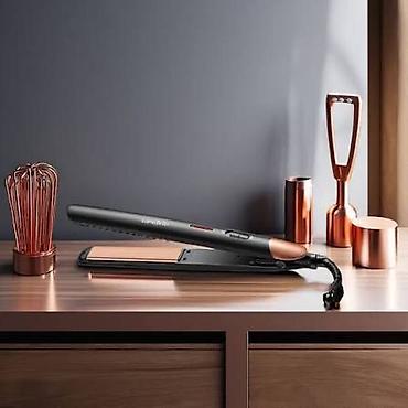 Идеален для ежедневного выравнивания волос, придания гладкости и сияния. Стильный дизайн в черно‑медном цвете.