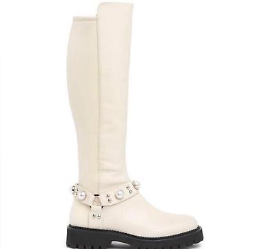 белые женские, размер Ремешок с пряжкой, украшенный акцентами из искусственного жемчуга с золотой отделкой и чередующимися золотыми люверсами, приподнимает эти сапоги до икры с закругленным носком и эластичным вырезом сзади.