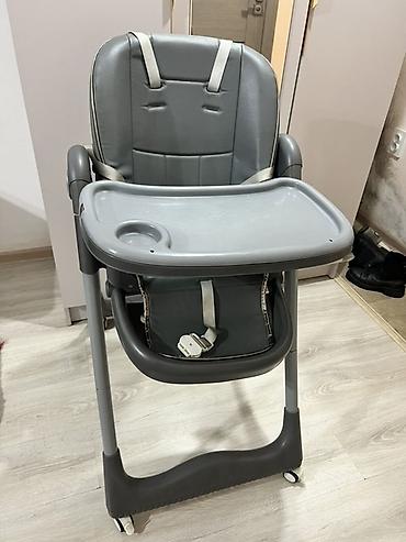 Подходит для детей, которые уже сидят самостоятельно. Удобен для кормления и игр, быстро протирается после еды. Компактно становится к столу взрослых за счёт узкого подлокотника и регулируемого подноса.