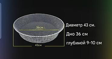 - Размеры: общий диаметр 43 см; диаметр дна 36 см; глубина 9–10 см.