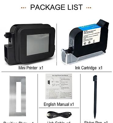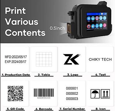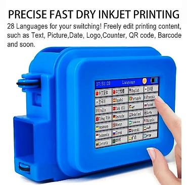 Компактный мини-принтер для оперативной маркировки продукции. Печатает даты, время, текст, номера партий, штрих‑коды/QR, логотипы и изображения на различных поверхностях.