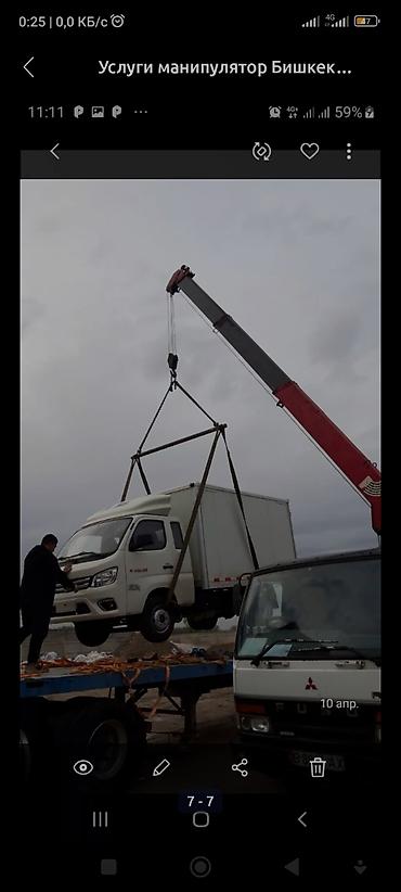 Услуги крана-манипулятора, Бишкек, 24/7. - Грузоподъёмность стрелы: до 3 тонн - Бортовая платформа: до 5 тонн - Гидроманипулятор на базе грузовика, выносные опоры - Погрузка, разгрузка и перевозка...