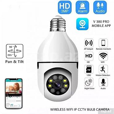 - Установка без проводов: вкручивается в обычный патрон E27, питание от сети, настройка через мобильное приложение V380 Pro.