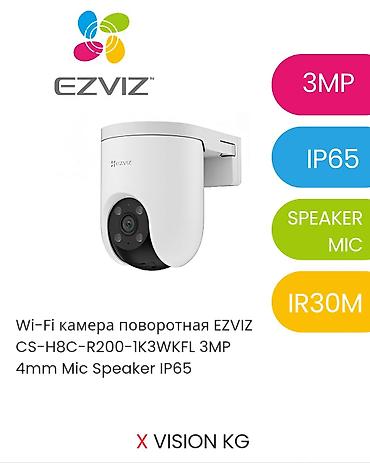 - Поворотная EZVIZ CS‑H8C‑R200‑1K3WKFL: 3 Мп, объектив 4 мм, микрофон и динамик, защита IP65, ИК‑подсветка до 30 м.