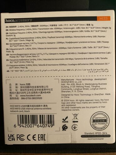 Идеален для добавления или обновления Wi‑Fi на настольном ПК и ноутбуке, стабильная работа в перегруженных сетях благодаря диапазону 5 ГГц, удобен для поездок и постоянного ношения в сумке. Цвет: черный. Бренд: hoco. Модель: HI33.