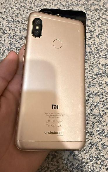 - Mi A2 Lite: металлический корпус цвета золото, сканер отпечатка на спинке, двойная основная камера со вспышкой, логотип Android One. Экран поврежден (видны трещины по стеклу).
