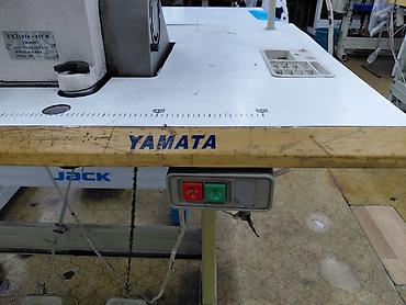 Промышленная швейная машина Yamata с многониточным оверлоком, предназначенная для выполнения различных швейных операций на производстве. Оснащена серым металлическим корпусом, системой управления на передней панели и несколькими держателями для нитей, что обеспечивает высокую производительность и точность шитья. Подходит для профессионального использования в швейных цехах и на фабриках.