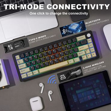 Клавиатура поддерживает двойные раскладки Mac и Windows, а также совместима с устройствами на iOS, Android, Windows и MacOS. Устройство подходит как для офисной работы, так и для увлекательных игровых сессий.