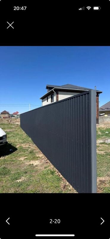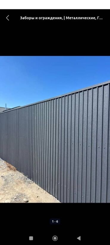 - Комплектация ограждения: листы профнастила, направляющие/лаги, стойки, доборные элементы и верхняя планка (на фото видна закрывающая кромка).