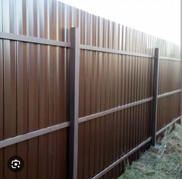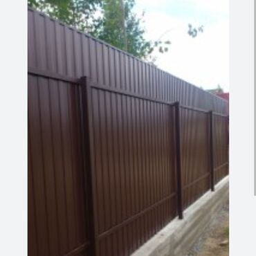 Профнастильный забор - Материал: оцинкованный профнастил с полимерным покрытием (вертикальная волна). - Цвет: темно-серый графит и коричневый (варианты на фото). - Конструкция: металлические опорн...
