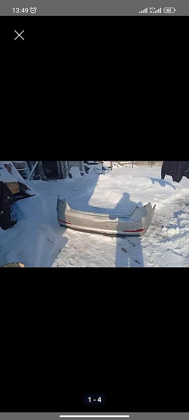 Задний бампер для автомобиля (седан), серебристый цвет.