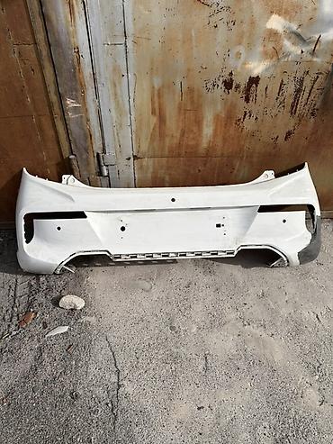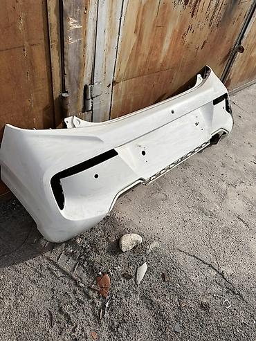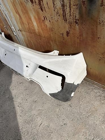 Задний бампер для автомобиля, белый цвет. Особенности: - Полный бампер в сборе под парктроники (видны посадочные места/отверстия). - Ниша под декоративную вставку/диффузор внизу, черная нижняя пла...