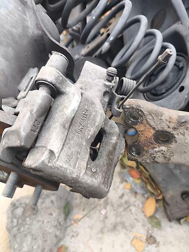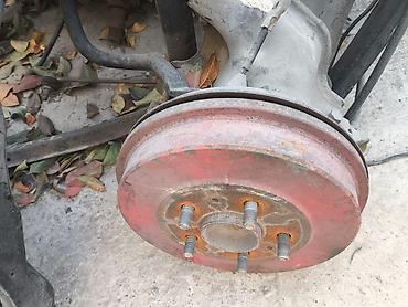 - Комплектация по фото: корпус суппорта, направляющие, пыльники, шланг подвода тормозной жидкости, крепёжные болты, тормозные колодки в посадочных местах, тормозной диск на ступице.