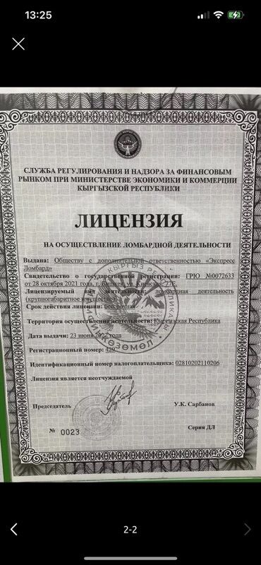 Ломбард предлагает займы под залог автомобилей. Процентная ставка составляет 2,5% в месяц. Оформление займа производится на основании лицензии, выданной Службой регулирования и надзора за финансовы...