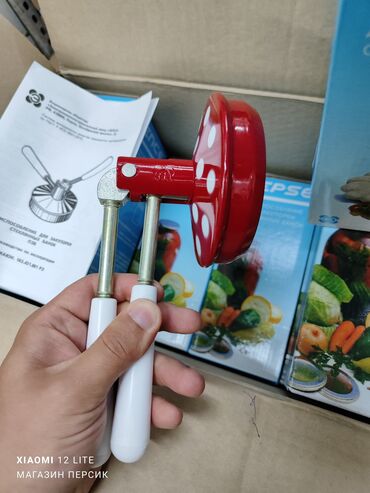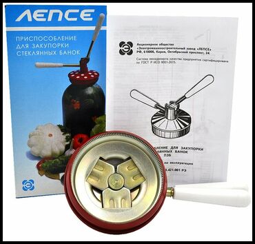 Закаточная машинка "Лепсе", предназначена для закупорки металлической крышкой стеклянных банок при консервировании в домашних условиях. На крышку, надетую на банку, установить приспособление для закупорки. Ручки должны находиться под углом 90°. Плотно прижать приспособление к крышке. Придерживая одной рукой нижнюю ручку, другой нажать на подвижную верхнюю ручку до упора вниз. Поднять верхнюю ручку в первоначальное положение и снять приспособление с банки.