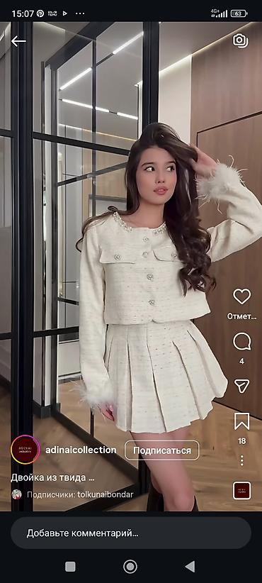 Заказала дочке не пошел размер .Новый твидовый костюм люкс качество .В живую ещё лучше,цвет айвори.Продаю ща ту же цену кот.купила.