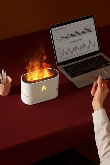 Үйүңүздө же кеңсеңизде жайлуулукту түзүңүз! Бул кооз нымдаткыч абаны нымдап эле койбостон, жалын сыяктуу көрүнүштү жаратат – жылуулук жана романтикалуу атмосфера тартуулайт.