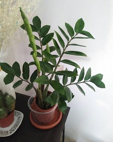 - Вид: комнатное декоративно-лиственное растение Zamioculcas zamiifolia