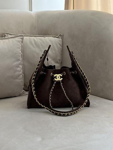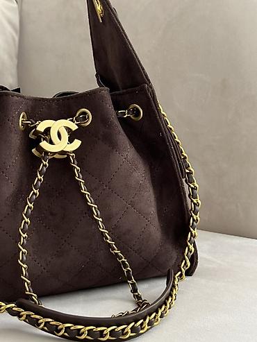 Сумка Chanel (неоригинал) коричневый замшевый вариант с фирменной