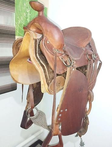 Подходит для длительных выездок, работы с лошадью, тренировок в западной манере. Крепкая фурнитура, удобная форма сиденья и широкие кожаные стремена обеспечивают стабильность и комфорт всадника. Комплект сразу готов к использованию: седло, подпруги/ремни, стремена, накладки, уздечка с поводьями и шпоры.
