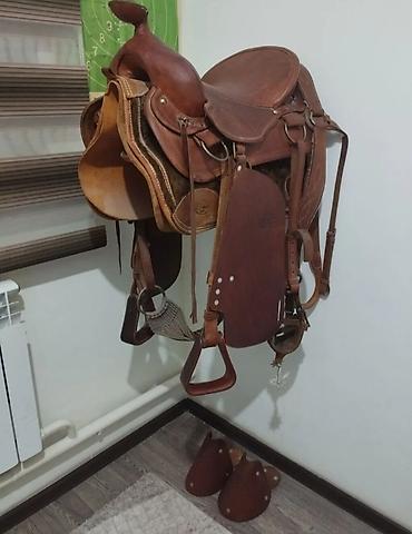 Западное кожаное седло (роудео/ковбойского типа) с полным комплектом упряжи и аксессуаров.