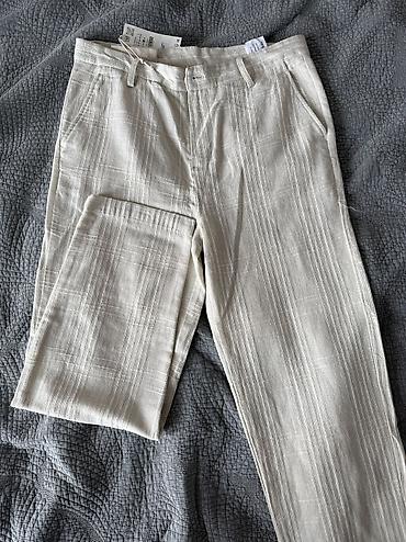 Брюки ZARA - Модель: прямые/слегка зауженные, с эластичным поясом и шнурком. - Цвет: молочный (кремовый). - Размер: S (EUR S / USA S / MEX 30 — на ярлыке). - Материал: плотный трикотаж с текстурой...